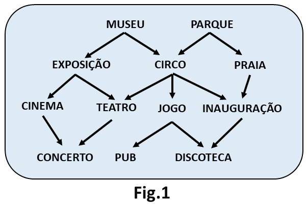 O Adolfo pretende criar um programa de quatro atividades para o próximo domingo. Para o ajudar a decidir na seleção, criou um esquema com as possíveis sequências de atividades (Fig.1). O Adolfo iniciará o domingo com uma visita ao museu ou um passeio no parque e terminará o dia num concerto, no pub ou na discoteca.